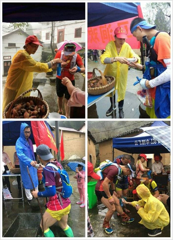 志愿者们为跑友们准备了丰富的补给品,有饼干、红薯、馒头、玉米、苹果、矿泉水等,为跑友们在艰辛的挑战之路上加油添能,“助跑”金华山之巅·百公里越野挑战赛。